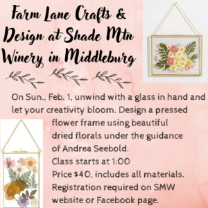 flights for purchase from Shade Mountain Winery, and enjoy a cozy, creative afternoon of making something lovely.