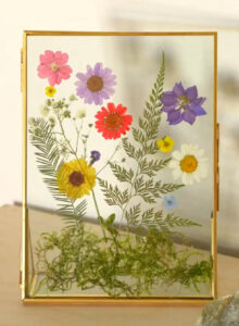 relaxed, beginner-friendly, hands-on workshop invites you to design a pressed flower frame using beautiful dried florals. You’ll create a 5×7 hanging gold frame,